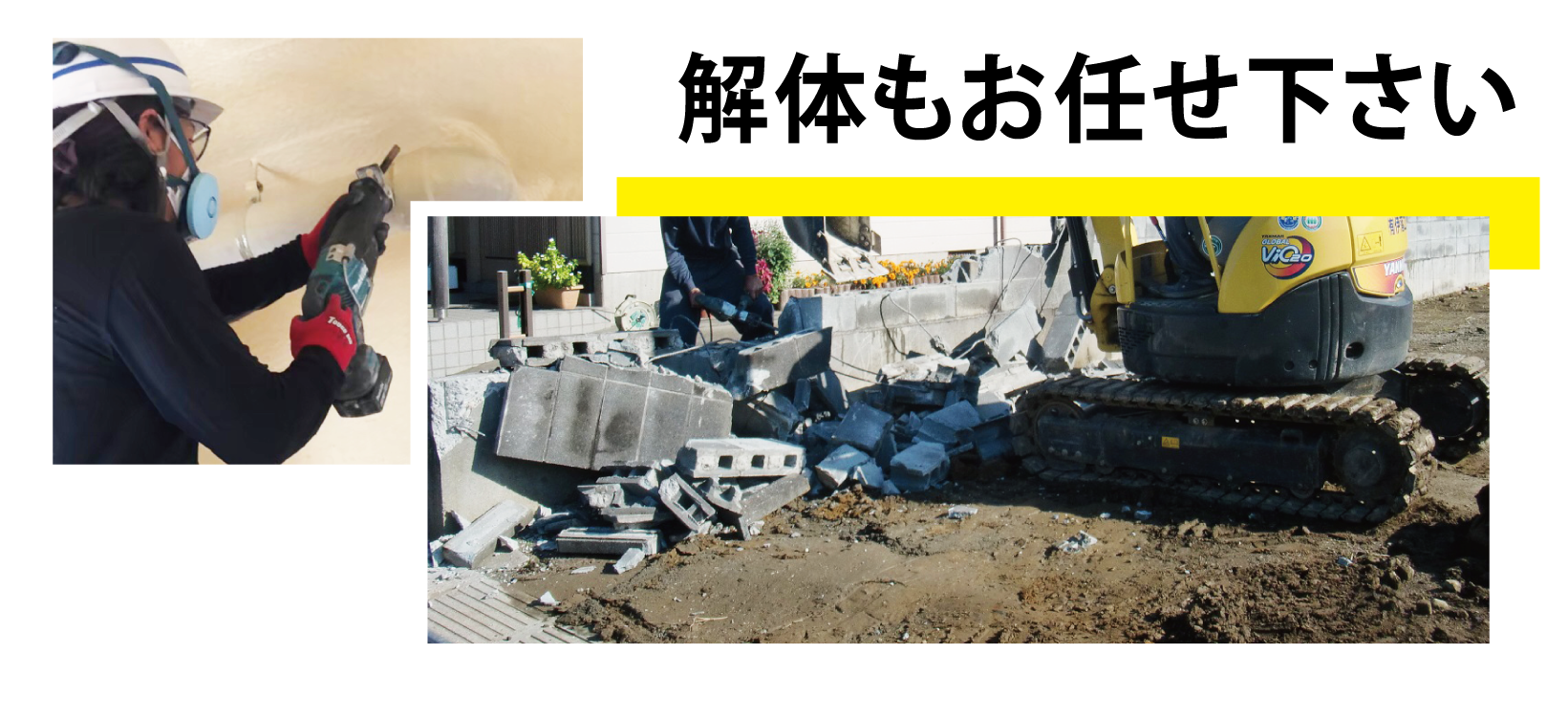住宅や店舗、倉庫などの解体工事なら弊社にお任せください。気持ちに寄り添う丁寧な作業を目指しております。「小川工業に任せてよかった!」と言っていただける施工を目指して日々工事に取り組んています。