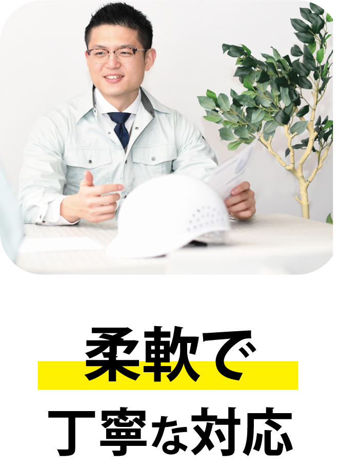当社は創業してから今日まで無事故で安全に工事をすすめてきました。早い対応はもちろん柔軟な対応がご依頼主様からご好評いただいています。 幅広い協力パートナー企業とのネットワークとチームワークで最適な仕事をご提供します。