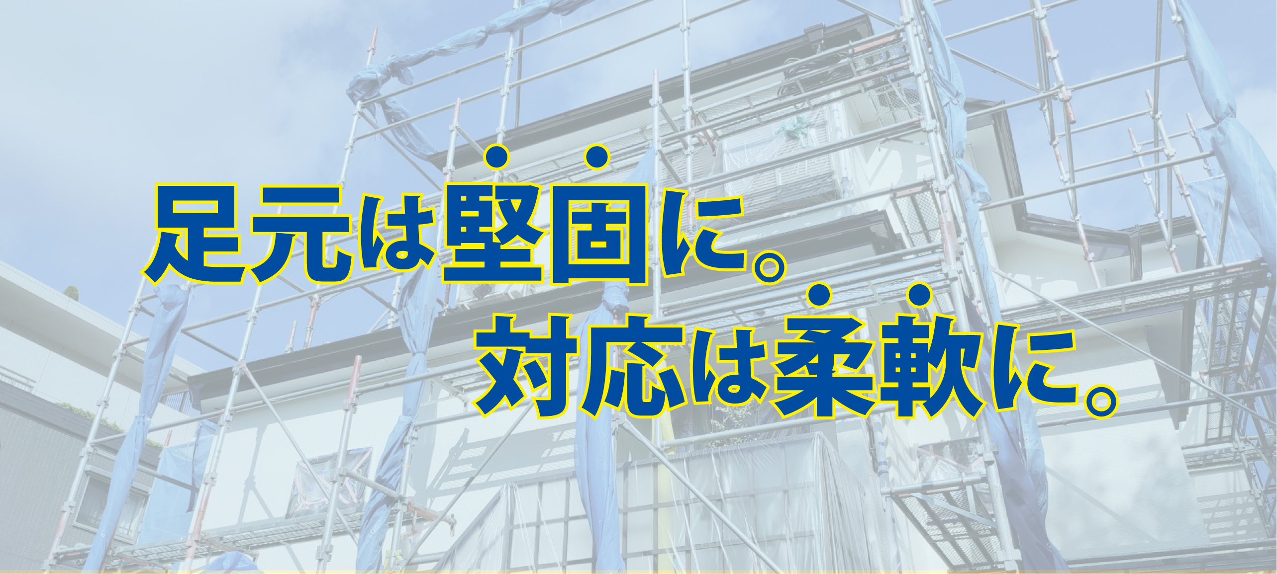 当社では塗装工事や防水工事、シール工事といった足場を組んで行う工事のご依頼まで一貫して請け負うことが可能です。これらの工事をお考えの方はお気軽にご相談ください。協力業者とも連携を取って満足いただける仕上りをお約束します。
